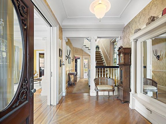Incredible and rare opportunity to own a historical turn of the century classic 1 Family home situated on a massive oversized double lot 50X100. Conveniently located 2 houses off Palisade Avenue which separates Weehawken from Union City, this exquisite home was previously owned by a State Senator and features, high ceilings, central ac/heating, custom molding, stain glassed windows and original functioning pocket doors that can close off the living room and dining room. The chef's kitchen is equipped with stainless steel appliances and a soap stone countertop. The second floor is spacious and has 4 true bedrooms. The attic can easily be converted to a master suite or 2+ additional bedrooms if needed. The finished basement has a new full bathroom and makes for an amazing entertaining space or an additional bedroom by simply adding one wall. The long driveway fits 3 cars and has a garage. Located next to Ellsworth Park and steps from the Manhattan bus with plenty of shopping and dining options. Don't miss out on this incredible home. PDF Floor plans available upon request.