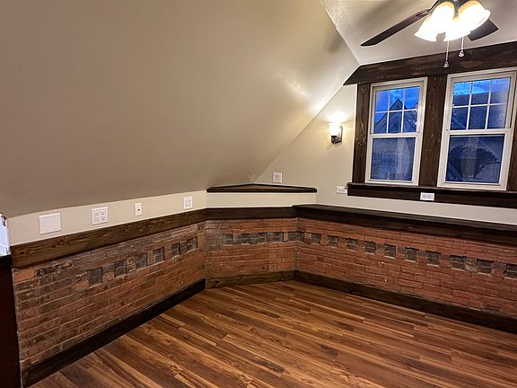 There's a little bit of heaven at the top of the stairs at 307 Third Street. It's a beautiful Victorian, in a quiet building. The vaulted ceilings, bring charm to the open concept as soon as you open the door. It has new hardwood floors throughout, gorgeous, new expresso cabinets, featuring a diagonal corner glass cabinet with a ceramic counter and corner sink and a nice bright window above the counter. All new built ins, microwave, black, self-cleaning 30" range and refrigerator. Part of the charm is the partially exposed brick walls, wall sconces, wood shelf and oil rubbed bronze ceiling fans in every room. There is plenty of natural light from the beautifully wood trimmed, double windows. There are plenty of closets throughout! Even the living room, has a 5 ft. double door closet with upper storage. There is a private bedroom, big enough for a king size bed. The hall to the bathroom has a built in closet, bathroom has a new expresso sink cabinet and bathtub, easy clean laminated shower walls in fall colors, hardwood flooring, and built in towel closet. The apartment is located within walking distance to all shops. Close to bus line, street parking. Your only responsibility is $995.00 rent+ electric and cable. All other utilities, the landlord pays. Included with rent payment, are heat, water, sewer and garbage. In 2023 we decided to do an extensive remodel. Everything is brand new including plumbing and wiring. This apartment was remodeled inside and out! 1 year lease period. No dogs, a cat is permitted. Non smoking building. Smoking only permitted outside. Building has code lock entry. Coin automated laundry, in house, 24 hr. access.