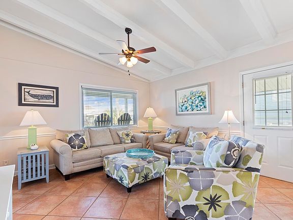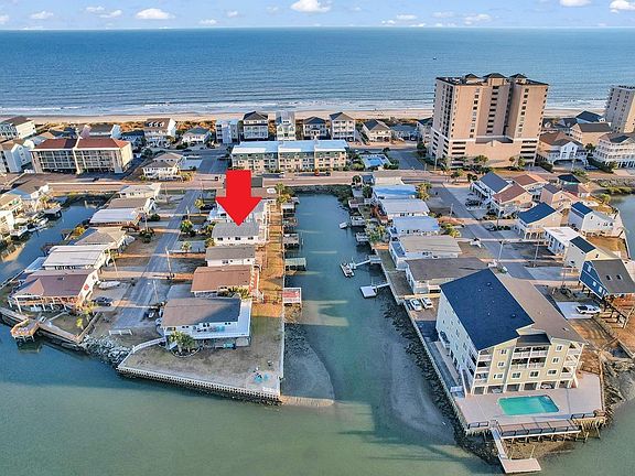 Beautiful channel home with boat dock! Only 2 blocks from the ocean and on top of Hog Inlet. The boat dock extends into the deeper water of the channel. This raised beach home has 3 bedrooms and 2 full baths and a great open floor plan with high ceilings and Lots of Natural light! The master bedroom has an attached bath with walk in shower. The 2nd and 3rd bedrooms share a jack n jill bath. The kitchen features stainless steel appliances, granite counters and breakfast bar. There is tile flooring throughout the home. Outside there are covered front and side porches along with a rear deck that overlooks the water and a stairway to the backyard leading to the dock. There is plenty of parking plus enclosed storage with a single overhead garage door under the home and a covered picnic area and outdoor shower.
