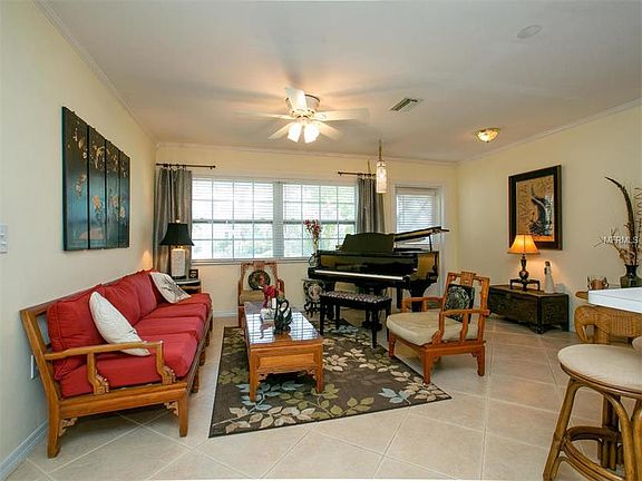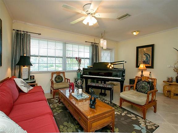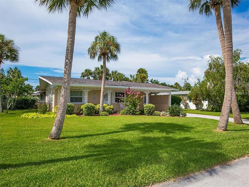 This graceful home in the Heart of Holmes Beach is a pleasure to enter and shows such pride of ownership. Delicate ironwork enhances the front porch. With over 1800 square feet of living space and situated on a 10,000 square foot lot with R 2 zoning, opportunities abound. Large open living space comprises the center of this home - with living room, family room, kitchen and office. All floors are tiled, crown moulding throughout and a kitchen skylight lights up the interior. A large screened lanai, looking out upon a well manicured and beautifully landscaped yard and water garden, adds to the gathering space - perfect for company...perfect for families. A split bedroom plan - with Master bedroom and bath on one side and bedrooms 2 and 3 and additional bath are opposite. All are carpeted and comfortable. Easy walking distance to Gulf Beaches, library, restaurants, shopping and entertainment. With plenty of room for a pool - this home is calling.