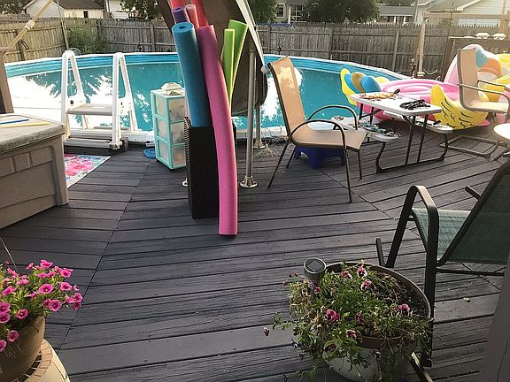 Living room, dining room, kitchen, 3-4 bedrooms 1 shower and jetted tub, 1/2 bath on 2nd story 1-2 bedrooms walk in closet Basement 3 rooms, use on for laundry and exercise and craft room, game room, tool room on 2 lots shared garage big enough for one car. Double garage in fenced in yard. pool and deck, patio on top story with sliding door. Weeping willow tree only 6 yrs old., total 5 trees. $89,900.00 with furniture $99,900.00 with furniture