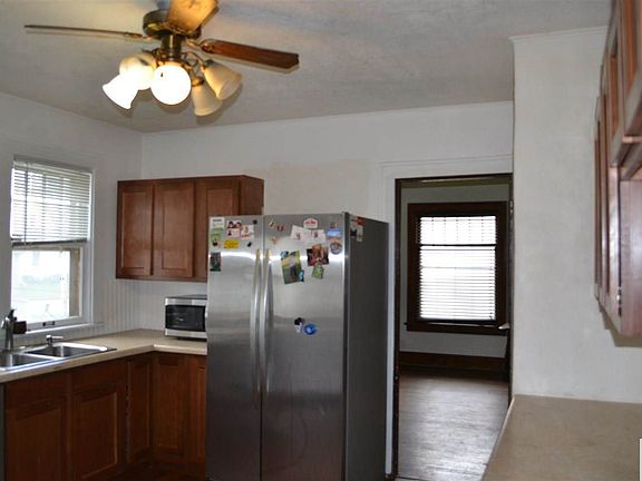 Large 2 story with much more potential. Has wood floors and large closets. Double lot with 4 stall newer garage and 2 stall older garage with concrete floors. Nice trees in front yard. Partially finished basement. Shingles new in 2017. All room sizes, measurements, and square footage are estimates.