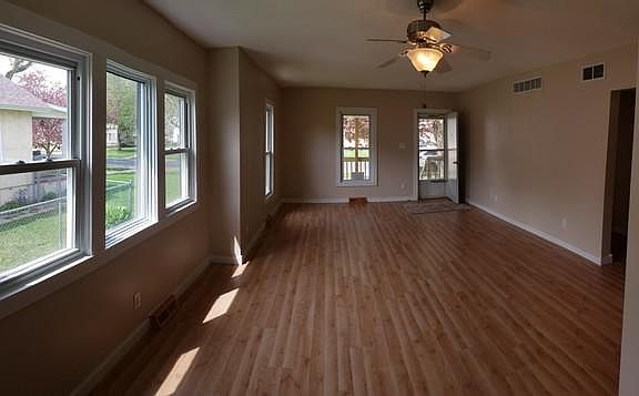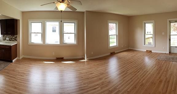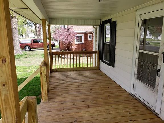 Completely remodeled interior. New treated 7x18 covered wood deck on front. Vinyl replacement windows throughout. All new flooring- wood laminate- living and dining rooms. Vinyl in kitchen and bath. Carpet in bedrooms 2020. New house roof 2018. Garage roof 2019. Refinished kitchen cabinets and counter top. New backsplash and sink. New furnace. Remodeled full bath with new sink, vanity, stool and tub with tiled surround. New trim, light fixtures, and plumbing. Updated electric. 14x15 enclosed back porch. Walk up stairs to attic could be finished for 3rd bedroom. 1/2 bath in basement. Will go FHA, VA, and RD.