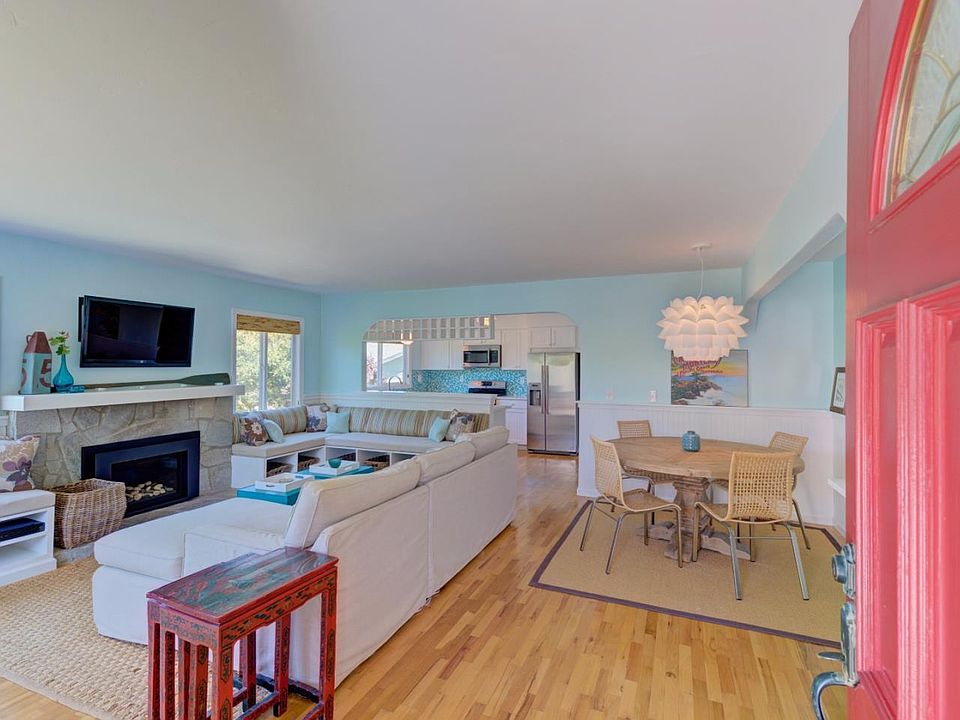 If you've been waiting for a getaway home close to town and water, here it is. The kitchen, living room, and dining areas are all stylishly revamped and sparkle with light. Turquoise tile accents with white quartzite counters in the kitchen invite entertaining. There's built-in shelving and seating in the living room. Oak floors throughout living/dining all three bedrooms and hall are a real plus. There's a separate laundry room and plenty of storage, too. Located just a few blocks from downtown coffee shops, fine restaurants, movie theater, and Bayside Recreation Trail.