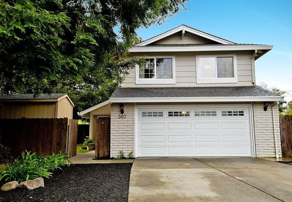 Welcome home to this beautiful two-story home in Twin Creeks. Nestled in the back of a private court down an extended driveway and backing to open space. Featuring approximately 1,704 square feet of expansive living space with 4 bedrooms (4th bedroom is currently a master bedroom retreat) and 2.5 bathrooms. Downstairs open floorplan with cozy family room, private dining area and kitchen/family great room. The spacious lot sits on an approximately 7,200 square foot lot at the end of the cul-de-sac and includes a gated spacious side yard with paved patio and green grass. The home sits among gorgeous redwood trees and other mature plant and trees ensuring plenty of privacy. Additional approximately 120 square foot detached shed includes office/study space & provides for abundant extra storage. Residents enjoy being just minutes from top-rated SRVUSD schools and the 680 freeway. HOA amenities include clubhouse, community pool and tennis/basketball courts. Interior Highlights • Spacious open floorplan • Cozy family room with brick fireplace • Sliding glass doors in family room lead to a gorgeous backyard patio oasis • Formal dining area with recessed lighting • Kitchen/family combo great room • Upstairs front bedrooms with ceiling fans and closet organizers Updated Kitchen great for entertaining • Granite slab counters • Crown molding with recessed lighting • Abundant bar seating • Walk-in pantry • Laminate wood flooring Other Highlights • Spacious master bedroom suite with retreat area (could be converted back to 4th bedroom) Walk-in closet. Luxurious master bathroom with tile flooring, large soaking tub with jets. Maple wood cabinets and vanity with marble counter. • Home has solar panels that significantly reduces the electricity bill. 10 year warranty. • Two car garage with hanging shelves for extra storage
