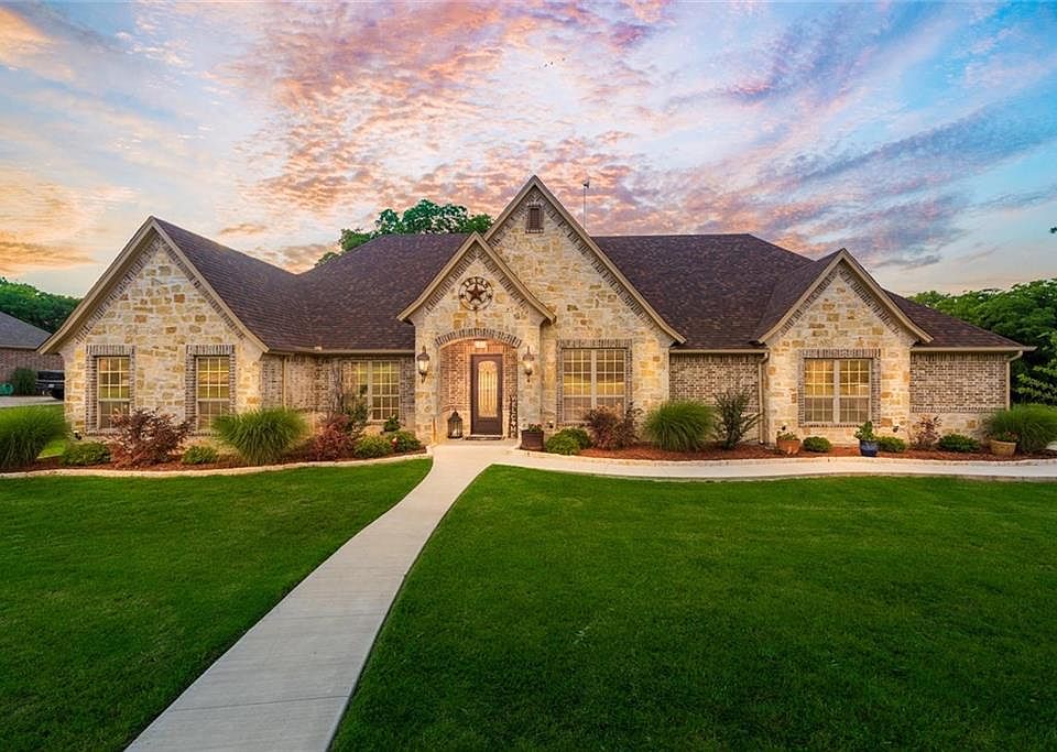 STUNNING 1.5 STORY CUSTOM HOME ON 1 ACRE WITH A VIEW! Home features open concept living room and kitchen,split bedrooms w in-law suite, and upstairs game room. Kitchen is chef's dream with granite, SS gas range, double oven, walk-in pantry, and large island. Master retreat boasts custom wood tray ceiling, en-suite w jetted tub, double vanity, large step in shower and custom closet w direct access to over sized laundry rm. Laundry rm includes washer,dryer hookup,sink,and fridge area w water line. Enjoy the sunset on the covered back patio w spa overlooking pecan tree and no backyard neighbors, other than occasional deer.This property is a one of a kind with too many features to list!