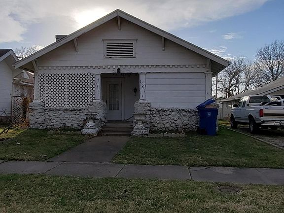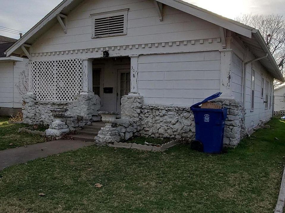 Convenient location, close to downtown. This home features 1395 sq. ft. to include 3 bedrooms and 1 bath. Large open living room with fireplace, dining room, kitchen with pantry and stove and refrigerator remaining. Utility room with ample storage areas and washer and dryer included. For additional storage there is a 1 car detached garage and a storage building located in the fenced back yard. Ready for new owner. Let's look today.
