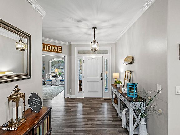 MUST SEE! This stunning and spacious home is on .69 of an acre located on a cul-de-sac in the city of Swansboro. With 5 bedrooms, three bathrooms, two of them with brand new vanities and a flex room on the first floor that can be used as a formal dining room, office, or playroom, the Owner's suite features a tray ceiling, soaking tub, a separate shower, double vanities, and a walk-in closet. The gourmet kitchen has been recently renovated with granite countertops and an upgraded refrigerator and new dishwasher plus it is equipped with a double oven, a gas stove, and a butler's pantry. The entire bottom floor, minus the three bedrooms, has been upgraded with LVP. The second floor includes a bedroom, a flex room (currently being used as a gym), a large bonus room, and a huge unfinished attic that can be use for storage. Outside, a large covered front porch, a fully screened in back porch, and a fully fenced and beautifully landscaped yard await you. This home has everything you need! Schedule your showing today!! Home has a termite bond