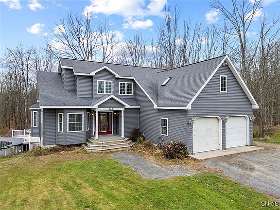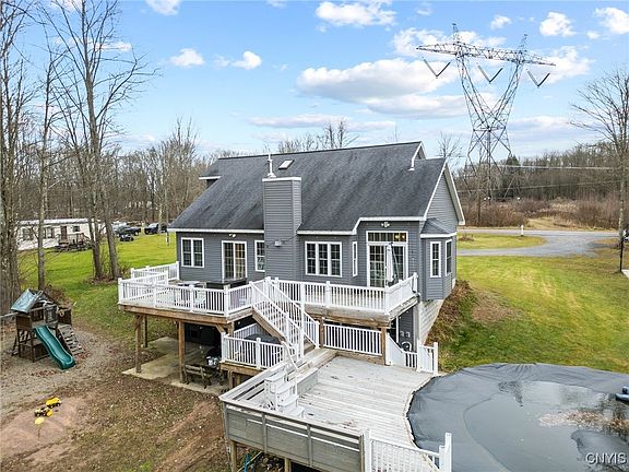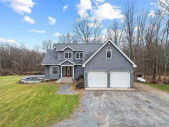 This beautiful modern colonial style home is less than 20 years old, has 2,850 sqft, 4 bedrooms with an additional very large den/office/work out space, 3.5 bathrooms, situated on over 17 acres full of country style living that incudes a pond, basketball court, large above ground pool all within 20 minutes to Syracuse and 15 minutes to the new Micron in Clay, NY! This Gorgeous house is boasting vaulted ceilings, a large wide staircase and landing that over looks the living room, a big dining room connected by a wrap around kitchen and walkout sliding glass door to the nearly 1500sqft two tiered deck gives you convenience, comfort and space all in one! Relax in your 1st floor bedroom suite with a large bathroom that has a stand up shower and a jacuzzi style tub with turbo jets for a deserving therapeutic massage anytime you'd like! This property is within 1/4 mile of the snowmobile trails. Come take a look at this uniquely built, modern colonial, that will give you serenity for years to come! *Note, some pictures are edited to showcase certain features of the home. Come take a look to see it for yourself!!!