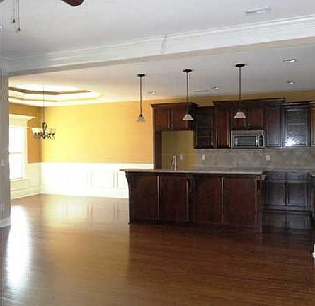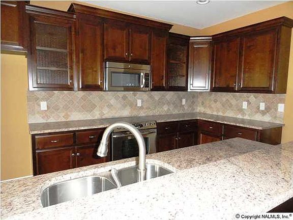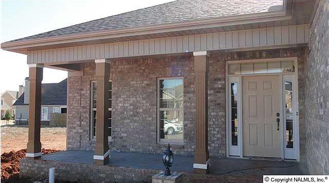 PATTI FLOOR PLAN. 3 bedroom, 2 bath, and full brick home with granite countertops, under counter lighting, crown moulding, stainless steel appliances, and hardwoods. master bedroom with walk-in closet and glamour bath. The open kitchen floor plan with granite breakfast bar and hearth fireplace in the family room is very warm and inviting. Relax on the covered front and covered back porch. Walking paths, fishing, and community pool located minutes from Redstone Arsenal
