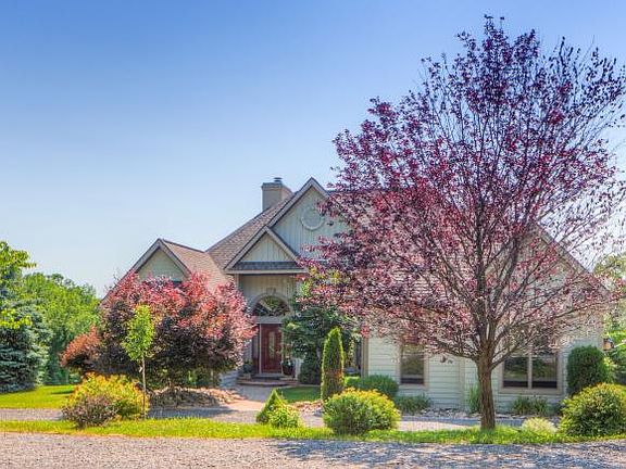 Rare find: Beautiful 1-story, custom home(2004), conveniently located 1 mile outside the City of Ithaca,1 ½ miles from Treman or Buttermilk Falls State Parks. Private setting on 3+ acres situated atop a knoll w/breathtaking views of the valley including distant views of IC & Buttermilk Falls. Open, airy floor plan w/vaulted, cathedral & tray ceilings. Gorgeous Master Suite w/walk in closet, luxury bath w/double head shower & Jacuzzi tub, open floor plan w/great room, den, office, gourmet EIK kitchen, laundry room, 2 car garage plus a 3 car detached w/workshop. A very special house!