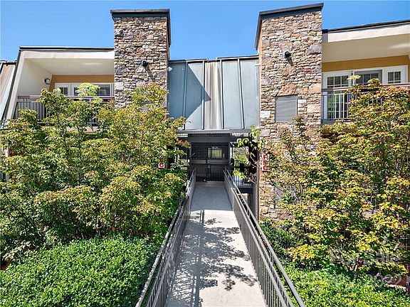 Wonderful lock and go condo situated perfectly between Downtown Asheville and Biltmore Village! Excellent income opportunity as a short term rental, and on-site management makes it so simple! Easy access to this unit with no steps. Open floor plan with wood floors in the main living area. Kitchen with granite counters, stainless appliances. Large primary suite with tile and glass shower. Gas fireplace in living area, balcony for enjoying the outdoors. Storage closet for owners. Large primary suite with tile and glass shower. Enjoy the pool, hot tub, and fitness center as well! All furnishings and linens included with the sale!