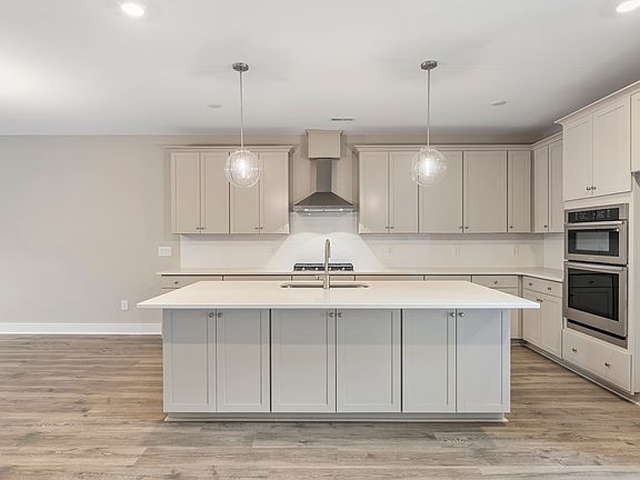 Introducing the Crosby, a luxurious townhome plan designed with modern living in mind. This spacious home features a two-car garage, providing ample parking and storage space. The exterior showcases beautiful farmhouse-style architecture, with hardi plank siding adding a touch of elegance and durability.