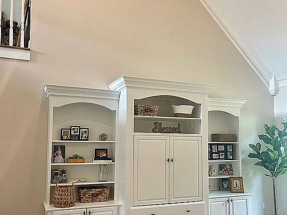 5 bedroom house in the cul-de-sac of a wonderful walkable subdivision. House has large amount of privacy with a level lot. Has 2 bedrooms on main level with kitchen, dining room and breakfast nook/eating area. 2 story Great room with large built in cabinet with catwalk overlooking. Brand new quartz countertops-2023. Multiple updates with newly refinished hardwood flooring, new brick fireplace, all 5 bedrooms have upgraded custom closets, added cabinets/flooring to laundry room and new wall paint 2022. Roof was replaced in 2018. Large exterior brick covered back porch and 4 car garage (2 detached and 2 attached). Extra 1 acre lot comes with the house that is adjacent to the house and property. Upstairs there is 3 bedrooms with bonus space/kids play area plus 1 jack and jill bathroom. This house has 2 additional storage areas upstairs for extra clothes, xmas decorations. Large attic space in detached garage. Move in ready.
