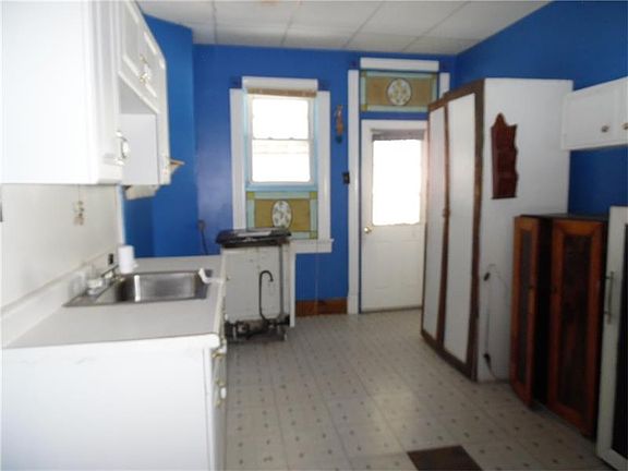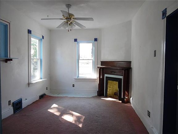 This 3 bedroom 1 bath frame home has large rooms with lots of space. The star of the living room and dining room are the corner fireplaces with wood detail. Updated bathroom. Walk up attic. Corner lot.