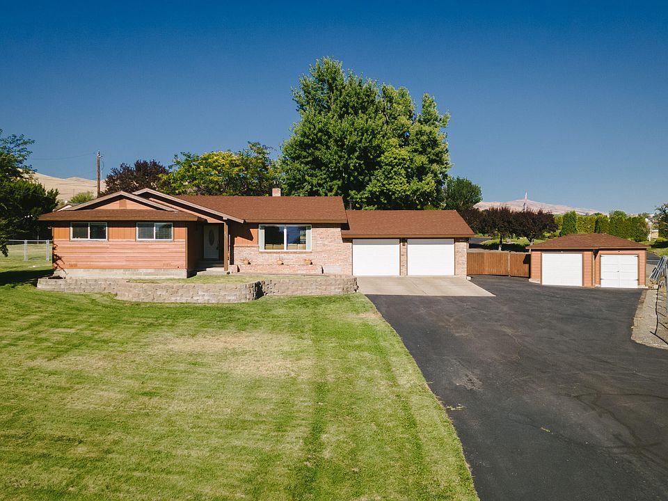 Breathtaking views right out your doorstep. Located in a picturesque neighborhood in Terrace Heights, this immaculate home has been recently updated with a new kitchen and bathrooms. The primary suite is spacious and includes a private bathroom. Step outside into the backyard and you'll immediately be relaxed! Situated on a one-acre lot with irrigation and a community well, this home has plenty of room for outdoor fun. In addition to the double car garage, the heated, detached shop is 425 square feet with plenty of space for all your toys.