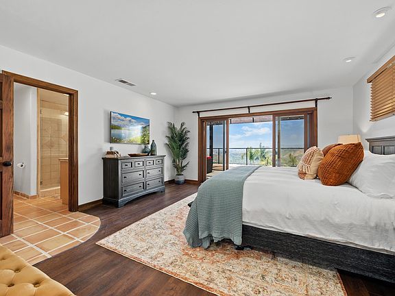 As you step inside, you'll be captivated by the elegant ambiance and thoughtful attention to detail. The spacious living area is adorned with terracotta tile flooring, vaulted ceilings, unique skylights, and large windows that invite abundant natural light and offer panoramic views of the sparkling Ocean. Sink into the plush down sofa and unwind while enjoying the warm glow of the fireplace or gather around with your loved ones for a movie night on the state-of-the-art entertainment system or playing a game of pool in the extra large game room with 2 sets of pub tables.