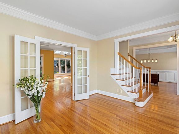 Simply stunning home in Camden Forest features 4 bedrooms, 3 1/2 baths with a back stairway leading to spacious bonus room, office, theater, workout, or pool room. Stately 3 sides brick! Durable fiber cement! Beams with quality--elegant moldings, trey ceilings, and wainscoting with raised paneling. Magnificent use of cathedral windows create wonderful sun-filled open spaces. Dream kitchen with granite countertops, tile backsplash, island, desk area, top of the line Bosch stainless appliances-double built-in ovens, range, dishwasher, washer, and dryer. Refrigerator and Microwave. Beautiful rich hardwoods. Your overnight guest or teenagers will love the privacy of the third floor suite. You'll love your private master suite with trey ceiling, sitting/office area, and a gorgeous spa bath featuring a luxury clawfoot tub and separate shower. Safe and peaceful fenced in backyard. Wonderful neighbors. Low annual HOA dues. Prime Cary location near Trader's Joes, shopping, restaurants, and just minutes to downtown Cary, Waverly, Fenton where you will find world class shops and the upcoming Epic Sports Complex. Come and see!