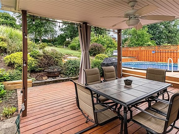 This Ross Township home will surprise you with its stylish updates and amazing location, super-close to downtown/Oakland/Lawrenceville/North Shore. A private outdoor oasis awaits you in the fenced-in rear yard with covered deck, new above ground pool, and plenty of space to play! Inside, the neutral décor, spacious rooms and open layout are sure to impress. A welcoming foyer leads up to the large living room, open to the dining room. White cabinetry and a tile backsplash are featured in the kitchen. The en-suite master bath and hall bath are both nicely updated. You’ll love entertaining in the huge lower level game-room with brick fireplace and accent wall. Conveniently located minutes to town, Ross Park Mall and the airport AND steps away from Scharmyn Park!