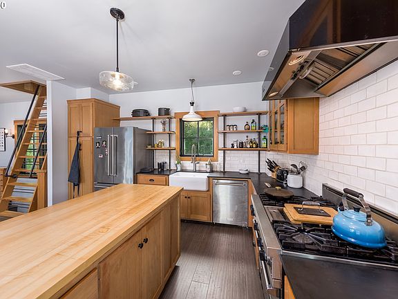 Gorgeous custom home in the heart of Mosier. Enjoy the views of the Columbia River throughout! NW contemporary style with beautiful exposed beams and natural wood trim. Open, loft floor plan allows for an abundance of light. Kitchen is equipped with high end appliances, open shelving, farmhouse sink and solid wood cabinets. Enjoy the scenery with French doors that lead to the covered deck & hot tub! Attached and detached garage for all your toys.