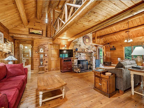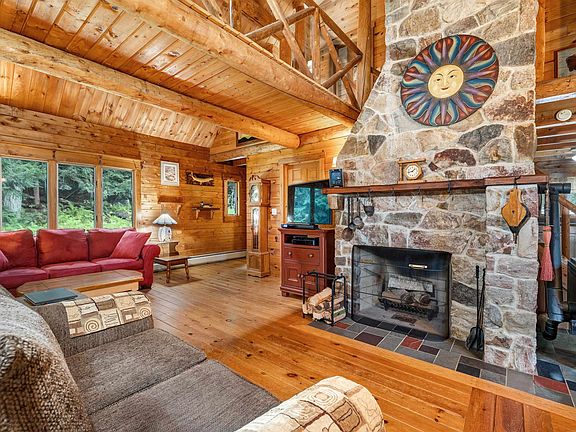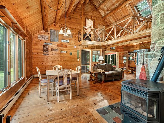 Been dreaming of owning a log home? Your time has come! This Katadin cedar log home is set on six and a half country acres and has so many features for you to enjoy. The main level is anchored by a large stone fireplace and has ample room for gathering and entertaining. The large, open kitchen provides much storage and counter space along with a pantry area housing the dishwasher and second sink. Off the living areas you'll find a tiled 4 season sunroom and covered porch, perfect for enjoying the outdoors regardless of the season. The second level offers two bedrooms with a bridged walkway between. A detached 2.5 car post and beam garage and 14x10 Reeds Ferry shed are ready to hold vehicles, tools and toys. In case of power outages the home is equipped with a full house generator. Today is the day to make that dream come true! Currently cable internet not available at the property.