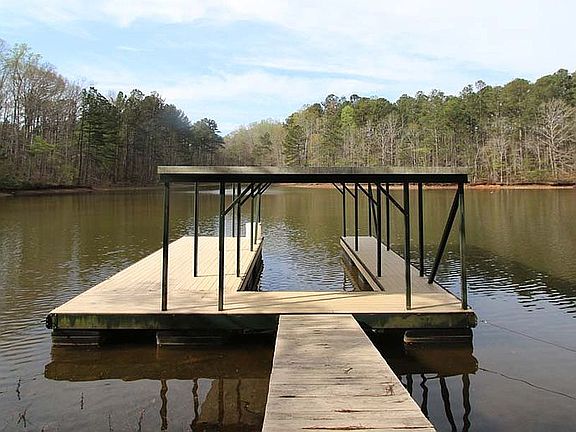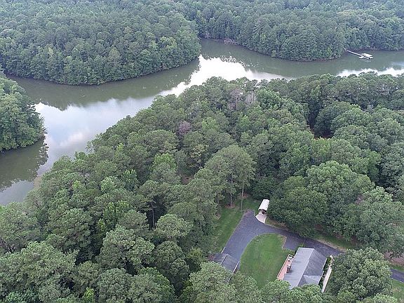 LAKE HOME with DOCK, Level Yard and YEAR ROUND VIEW! This 4-sided brick, 4 bedroom, 3 bathroom home is located on a level lake lot with a short walk to covered dock. Home features include 3 bedrooms and 2 bathrooms on main, including a master bedroom with private bath. Newly installed custom Maple stained hardwood kitchen and pantry cabinets, Large laundry room and mud room. 1 bedroom in basement and multiple flex rooms that could be used as additional bedrooms. Game room, bathroom, and tons of storage in basement as well! Hardwood flooring through main level living areas. Heated and cooled detached two car garage with workshop. Separate large carport to park that RV! Call today for a private tour!