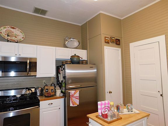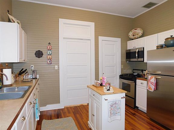 Charming with a warm touch, three bedroom home that has plenty of light. You could even walk to the square and enjoy a movie. Beautiful transoms over every door and a nice size kitchen with a large pantry and swinging door to the dining room. There is plenty of storage. Original hardwood floors. The attic is partially floored, has fans, lights & thermo stat. Storage building stays. New Ductwork, vapor barrier, water heater & a/c unit was replaced in 2012.