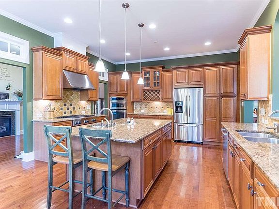 GREAT FLOWING FLOORPLAN WITH INGROUND POOL! 1st flr office/study/guest bedroom (no closet) w/full bath, HUGE Family rm w/ built ins/gas fireplace & open concept. Keeping/Gathering Rm w/ gas fireplace. 3 porches. 2nd floor Bonus Room/Office & 3rd flr Rec Room. Tons of upgrades! Hardwood flrs, archways, oversized bdrms. Island kitchen w/ Granite counters, SS appliances including Maytag Refrigerator, 6 burner gas cooktop. Great deck for entertaining overlooking your own pool & hot tub. 1 yr home warranty!