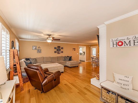 Come Take a Look!!! BACK ON THE MARKET AT NO FAULT OF THE SELLERS. Home inspection and appraisal completed. Well maintained 3 Bedroom, 2 full Bath, Ranch style Home with NO HOA!!!! Sitting on Half of an Acre, this beautiful home has a Large Driveway, including a New Circular Driveway recently added by the Sellers. Additional outdoor features include a beautifully maintained yard, large Front Porch, Hot Tub, Fenced-In yard, a separate Large Out-Building with Lighting, Newly added Covered Pergola, Large Swing Set and Screened-In Patio!!!! Home also has a New Roof 2023, 2017 New Gutters, New Stainless Steel Appliances, Outdoor Lighting, Irrigation added to the backyard, New Garage Motor, New Circular Driveway and Water Filtration System. As you walk in the Front door you are greeted with the large open Living Room, hardwoods throughout main living area, and brick fireplace. The Kitchen offers White Cabinets, Stainless Steel appliances, Granite Countertops, an abundance of cabinet/storage space, with a Breakfast Nook. Off the Living Room and down the hall you will find a Walk-In Laundry Room, two (2) Bedrooms, and a Full Bath. Also, located down the hall you will find the Master Suite which has a large en-suite, Double Sink Vanity, Large Walk-In Shower, and Walk-In Closet. This home has been well-loved and is ready for its New Owner. CALL NOW to schedule your Private Showing and make this Your Home!