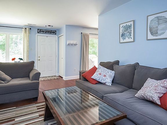 Tastefully decorated 2 bedroom townhome with many upgrades facing wooded open space. Enter this beautiful home into the large living room with hardwood flooring, wood burning fireplace and tons of natural sunlight from the large windows and patio sliders. Spacious dining room overlooks large eat in kitchen with painted cabinets, new appliances and plenty of counterspace. First floor also includes a large updated powder room. The second floor includes two spacious bedrooms. Double doors open into the master bedroom with cathedral ceilings, large window, updated master bath with walk in stall shower and glass doors. Large walk in closet for extra space. The second bedroom also boasts large closet space and big windows for great natural sunlight. Full hall bathroom with tub/shower combo and extra large linen closet with new doors. Second floor laundry for easy convenience. Great privacy in a quiet neighborhood that is conveniently located allowing quick access to 202, 309 and Turnpike. Close to restaurants and shopping just minutes away. Don~t miss this one!