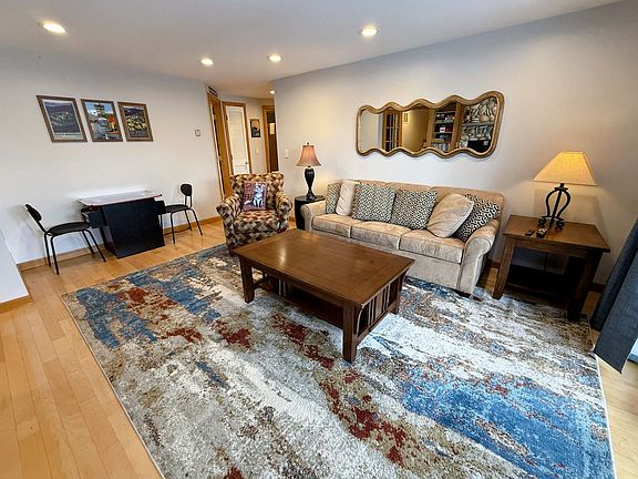 Nestled on the mountainside, this charming 3-level Crawford Ridge townhouse offers a breathtaking view of Mount Washington and a ski-in/ski-out experience. The contemporary design welcomes you with a gorgeous living room featuring a wood-burning fireplace and cathedral ceilings, a well-appointed kitchen with granite countertops and a wet bar, and a spacious dining room. The main level also includes a generous mudroom with seating and gear storage, as well as deck access. The second level boasts an open walkway overlooking the living area, leading to two bedrooms, one with a private deck. The lower level offers a second living area with a fireplace, two additional bedrooms, and deck access with a fire pit. This home is complete with AC, radiant floor heat, and wood floors throughout. The townhouse features a fully stocked kitchen with granite countertops, stainless steel appliances including a gas range, dishwasher, and drip-style coffee maker, and a cozy breakfast bar seating four. The dining area includes a large table that seats eight, surrounded by comfortable furniture and a wood-burning fireplace. The lower level provides a second living area with a TV, comfortable couches, and a laundry room. Outdoor spaces include a back deck accessed from the main level and a yard with a fire pit accessible from the lower level. Guests can enjoy discounted tickets to the world-famous Cog Railway and 25 pool and gym passes at the Mountain View Grand Resort and Spa. Parking is limited to two vehicles at the unit, with overflow parking available a short walk away. Additional trash pickups during your stay are available for $10 per pickup. Located in the heart of Bretton Woods, New Hampshire's largest ski resort, this townhouse is within walking distance to the ski slopes, base lodge, and Fabyan's Fields. Just minutes from the historical Mount Washington Hotel, you can enjoy its award-winning spa, restaurants, and a myriad of activities such as zip-lining, rock climbing, mountain biking, and golfing. The area offers both downhill and cross-country skiing, ice skating, snow tubing, and more. Explore nearby attractions like the Cog Railway, Santa's Village, and the Flume Gorge, or visit the State Parks Crawford Notch and Franconia Notch. This home is located in a quiet, family-friendly resort area, and is not suitable for parties or loud gatherings. Quiet hours are from 10 p.m. to 8 a.m., and violation of this rule may result in a $100 fee. Unauthorized pets or guests are subject to a $300 fee and immediate termination of your stay with no refunds. No smoking is allowed inside the unit, with a $250 fee for violations. Trash or food left outside may incur a $100 fee. Check-in is any time after 4 p.m., and check-out is at 11 a.m. Unauthorized early arrivals or late checkouts are subject to a $100 per hour fee. A rental agreement must be signed to comply with insurance requirements.