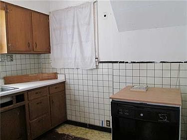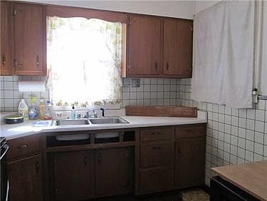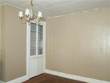 Check out the large sized rooms in this home. Family room easily converted to first floor master. Foyer large enough to double as den area. Built in china cabinet adds character to dining room. Additional room is unheated but works as pantry/storage area. Convenience of full baths on each floor. Large covered front porch for outdoor relaxation. Flat back yard. Two car and one car detached garages in need of work.