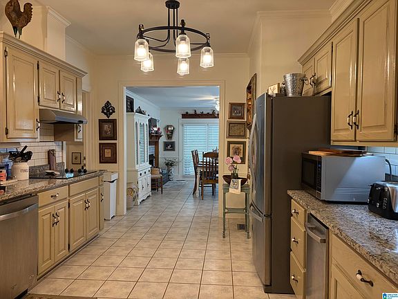 This gorgeous home has all the bells and whistles starting with the spacius beautiful family room w/ a fireplace surrounded by marble tile w/ dental crown mold trim & gas logs. There is also dental crown mold trim around the ceiling & gleaming hardwood floors in the family room, large dining room & entryway. Three bedrooms offer a full bath and there is also a half bath off of the hallway. The beautiful kitchen offers plenty of cabinets w/ granite countertops & a separate breakfast room. The laundry room has lots of cabinet space and also a sink. Located right off the laundry room is another half bath. This home also offers lots of closets, storage areas inside & out & also a walkout basement. The backyard is fenced in and has a building with solar power. There are 2 driveways with one leading up to a building with1300 sqft, roll up doors & an entry front the road with a metal fence and gate surrounded with brick columns. Other features include lots of built in shelving & 9ft ceilings.