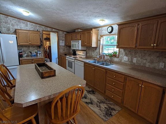 Huge 28x80 double-wide on nearly 1 acre private lot. Open floor plan features kitchen with center island and large dining area plus adjoining great room w/ wood burning FP. First floor also includes formal dining room, laundry room. 4 bedrooms, 3 full baths including huge ensuite with hot tub, stand up shower, double sinks and walk-in closet. Large from deck and fenced rear yard. 2 car detached garage and more in a private, peaceful setting. Check it out!