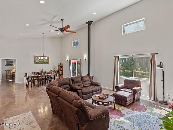 Custom Built Single Level Home with 30x40 Shop on nearly 14 Acres (additional 10 Acres available). 2,112 sq ft features soaring high ceilings, hydronic in floor heat, wood stove, beautiful concrete flooring, large kitchen with stainless steel appliances, granite countertops & oversized pantry, large windows for optimal natural light, primary suite and so much more! 30x40 Shop with lean-to, concrete floor, windows and wired 220. Private, flat treed acreage with lawn, garden, and mature trees. Easy access on county-maintained road!