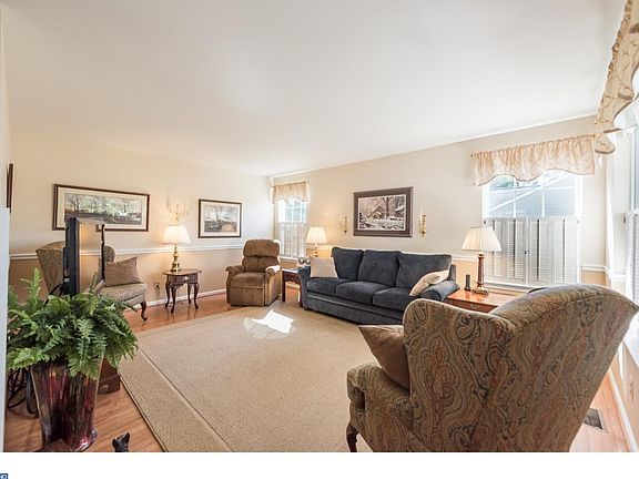 This is the largest model home in this lovely 55 Community and it provides easy, open, spacious, living with lovely wooded views. Enter to the main level with hardwood floors throughout. You'll find the bright and spacious living and dining rooms in the front of the home. Flow into the completely updated eat-in kitchen with new cherry cabinets, granite counters, stone backsplash, and recessed lighting. Indoor/Outdoor dining is easy, with the large Trex deck right outside your kitchen through double sliding glass doors. Double door entry leads to the Master Bedroom with vaulted ceilings and the fabulous Master Bathroom with granite counter, a walk-in steam shower, and beautiful natural lighting. Also on the main level is the laundry room and a half bath. The lower level is just as beautiful, including a large family room with recessed lighting, beautiful built-ins on each side of a gas fireplace, and sliding doors leading to the lower tier of the Trex deck overlooking the wooded lot behind this property. Also on this floor, you'll find an office/library, a convenient 'hobby room' which includes a sink, a half bath, and a utility room with space for storage. This level provides a convenient staircase with chairlift up to the main level. On the second level, you'll find 2 spacious bedrooms and a full bathroom. This generous home has notable features like louvered shutters throughout the first floor and a built-in sun awning on the deck for relaxing in the shade. A well-appointed home in a serene setting, with all the modern updates you could want. Be sure to watch the Virtual Tour and Schedule a Private Showing today!