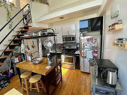 EAST WILLIAMSBURG 5 BEDROOM 2 FULL BATH This loft-like duplex really is bright and airy. 5 bedrooms surround a huge common room with 20 ft ceiling, 2 living spaces one on first floor one on second floor, kitchen combo. Great for entertaining. White cabinets and stainless steel appliances for an ultra modern feeling. Huge skylight over head with extra high 2 level ceiling. Bedrooms are large fits king size bed plus desk to work, and have huge windows allowing even more natural light in. 2 Modern bathrooms, deep soak tub, fully tilled, renovated with no expense spared. This is the place if you have a large crew! luandry in building, courtyard! Great neighborhood, tree lined street with short summer strolls to local cafes, shops and Cooper park. great for BBQ's and a fun dog park. In between both the Morgan and Grand L subway lines great for commuters. CONTACT US NOW TO SCHEDULE A SHOWING