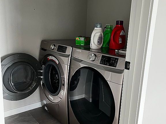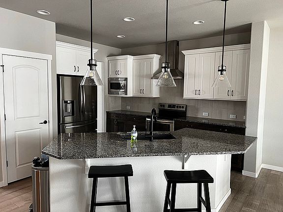 Stunning new contemporary home by CB Signature Homes. The Kensington offers 2035 finished square feed with 3 bedrooms, 2.5 bathrooms, an office/study, large loft, 3 car tandem garage and a full unfinished basement. Beautiful kitchen with large island and breakfast-bar style seating, pantry and mud room with built-ins. Stainless steel appliances, and granite countertops. Gorgeous rock gas fireplace and air-conditioning. Master bath features a large soaking tub and walk in shower with laundry room right outside. Washer and drying included. Fenced back yard with beautiful landscaping. Berthoud is a wonderful town with great schools, TPC Golf course, nearby shopping, many parks and trails for outdoor recreation. Come check out this beautiful property -Minimum of 1 year lease -Renter pays all utilities -1st month's rent and $2800 security deposit -Renter is responsible for all snow removal in the driveway and sidewalks on the property -Renter is responsible for maintaining the landscaping -No smoking in the home Renter is responsible for all utilities, no pets, and no smoking. Minimum of 1 year lease.