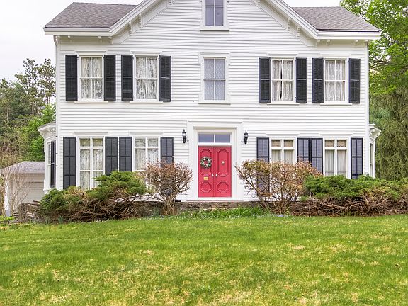 Fantastic 3579 sq ft circa 1800 beauty with 5 bedrooms, 3 baths, 9'4' ceilings, beautiful trim, great fireplace & wide board floors surrounded by 6 private acres w/20x40 in ground pool. 4 burner gas range-5 yr old gas boiler-newer roof-B-Dry system I basement-walls & attic ceiling foamed-screened porch by huge brick patio-cabana-outside shower-basketball area-great commuter location