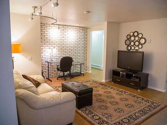 Completely furnished, newly remodeled apartment in house-style triplex. Large living room with plenty of space for both working and relaxing, high-end leather furniture, two double closets, quality washer/dryer in unit, large shared yard. Easy access to almost anywhere in Anchorage, 2 blocks from the Chester Creek Greenbelt in one direction and 2 blocks from REI and weekly farmer's markets in the other. Quiet, safe, and home-like. utilities included 6-month lease, rental application/credit check required. Shorter lease available for additional cost $700 deposit. Sorry, no pets or smokers.