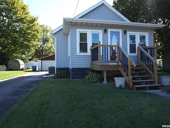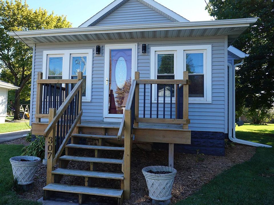 Open floor plan with xtra space for office! Large living room open to dining area and kitchen... "everything flows" floorplan. Plenty of cabinet & counter space with all appliances staying. Washer/dryer and deep freeze in the basement stay with home too. Nice updated bathroom with tiled walk in shower. Basement houses the 2nd bedroom, no egress window. Lots of built in cabinets for storage and free standing shower. You'll love the newer front deck and covered 11x16 patio in the back. Ally access to level backyard. New furnace in 2022, house siding, roof, gutters, patio in 2019. Great house and investment!