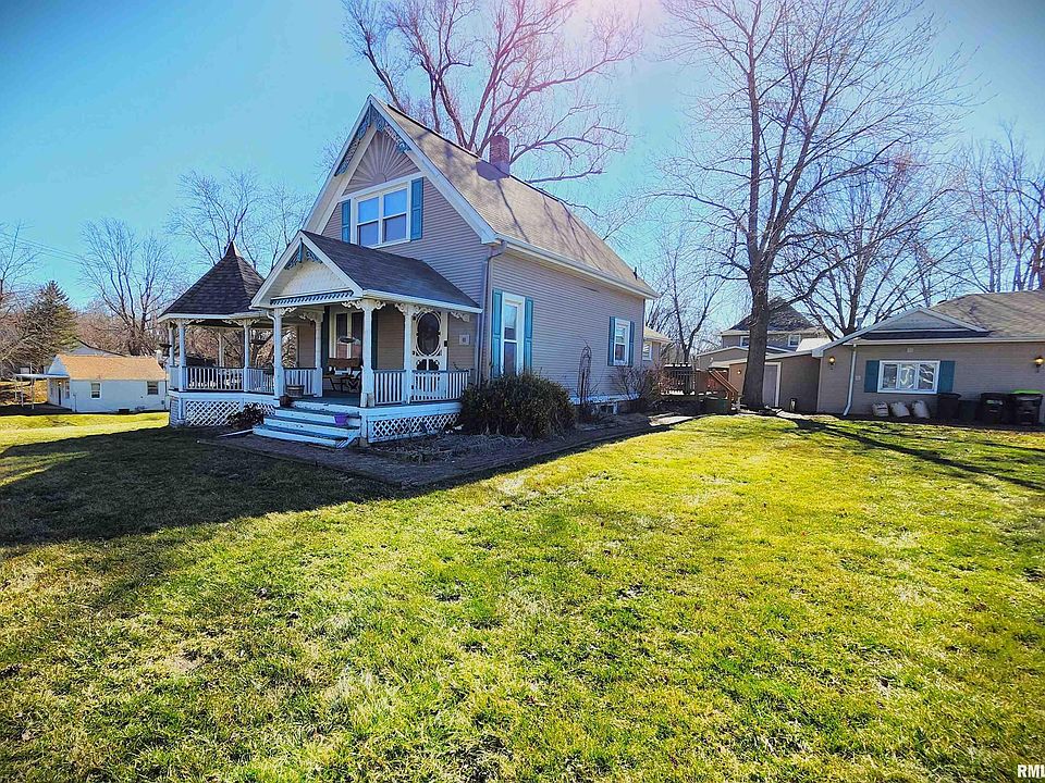 Price improved on this beautiful two-bedroom, one-and-a-half-bath, one-and-a-half-story home is absolutely charming. The beautiful front porch with a side gazebo is just the beginning of the curb appeal this property has. The inside is wrought with beautiful woodwork at every turn from the beautiful staircase to the double wide doorways between the formal dining room, the living room, and entry. The updated luxury vinyl planking matches the texture of the house and speaks to the care of the owners as they've modernized parts of this house while preserving its original character and beauty. The deck that is just out the back door is perfect for private evenings outside or for hosting guests. The massive garage is exactly what anyone needs no matter what they need the extra space for. In addition to the incredibly oversized shop, there is an additional dry bar mancave/entertaining space that is ready for family gatherings or simply your own incredibly spacious separate and private getaway. With freshly repaired drywall and paint, a pressure washed and refreshed exterior, a brand new water heater, newer HVAC, and a new roof, you can have confidence that you are as prepared as possible for the future with low worries! Don't let this beautiful opportunity go away. Call for your showing today.