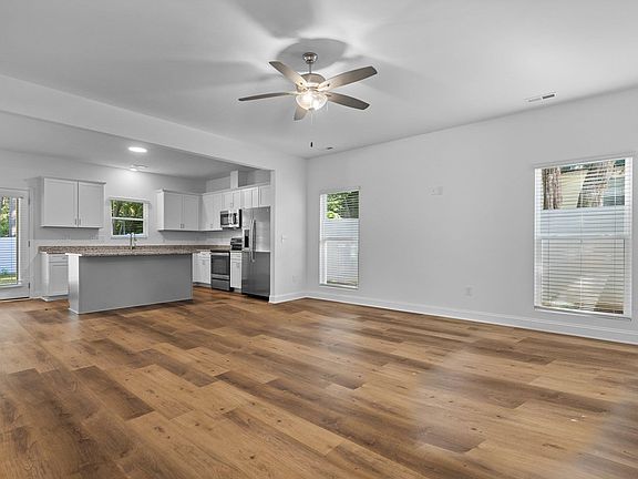 Minutes to the new revitalized downtown district with restaurants, coffee shop & shopping! PRIVACY FENCED BACKYARD! Luxury Waterproof/Scratch Resistant Flooring Throughout- NO CARPET! BLINDS INCLUDED! Kitchen: White Painted Shaker Cabinets, Granite Ctops, Sink w/PullOut Sprayer & Window Above! DarkGray Painted Center Island w/Overhang for Barstools! Stainless Appls Incl FRIDGE! 2 Pantries! FrenchDoor to COVERED PORCH overlooking Private Rear Yard! MstrBdrm: Desgnr CeilingFan & Huge WIC w/WoodShelves! MstrBath: White Painted Dual Vanity w/Granite & Desgnr Framed Mirrors! Large WlkInShwr w/GlassDoor! WlkIn LaundryRm! WOODED LOT! Huge Additional Side PARKING PAD!
