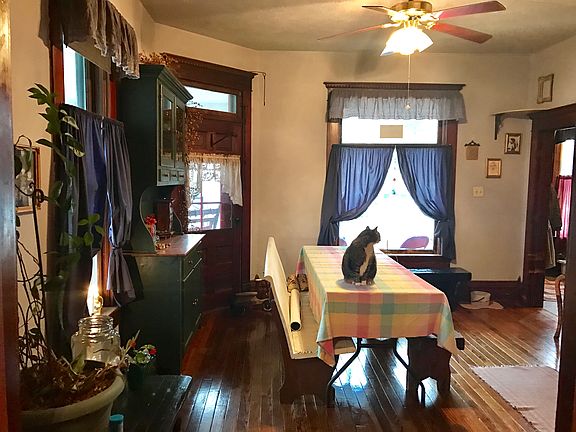 This 4 Bedroom 1 full bath home has beautiful original hardwood floors and wood working. New Metal Roof is just a year and half old. Right across from Triton Elementary School. Relax on your front porch with new poly vinyl railing. Home has 1-2 bedrooms on the main floor, den with separate family and living rooms. Large dining room area that could easily expand the kitchen. Two garden sheds 10x10 and 10x14 and a 1 car garage. Storage in the attic. Basement. Priced to sell! Cute kitty and puppy dog in pics not included! ;-) Call Lana Ball for your private showing 574.286.6537