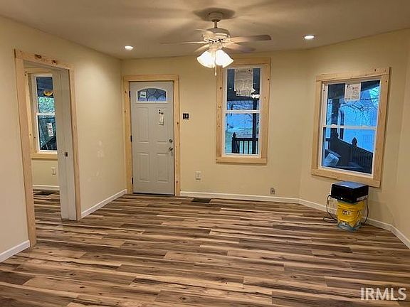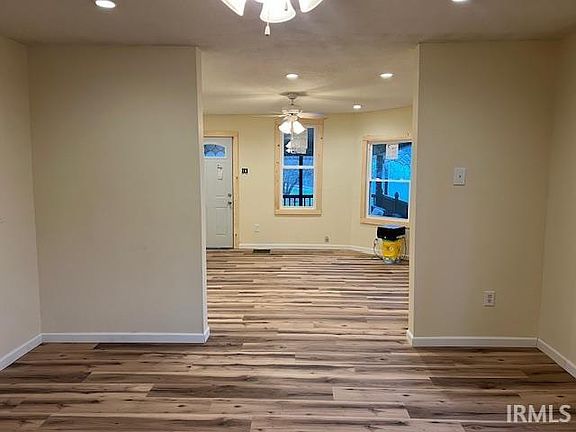 Nicely renovated one and a half story home adorned with a nice wide front porch ready for all your seasonal decorating, plenty of room for patio furniture to create an inviting space for you, your family and your guests. This home features tall ceilings, freshly painted walls and trim, beautiful new vinyl plank flooring cascading throughout and a nicely renovated bathroom on the main level. Large open living and dining area that leads to a freshly updated kitchen that includes a refrigerator and stove. This four-bedroom, one bath home has plenty of space for you to call home. Immediate possession!