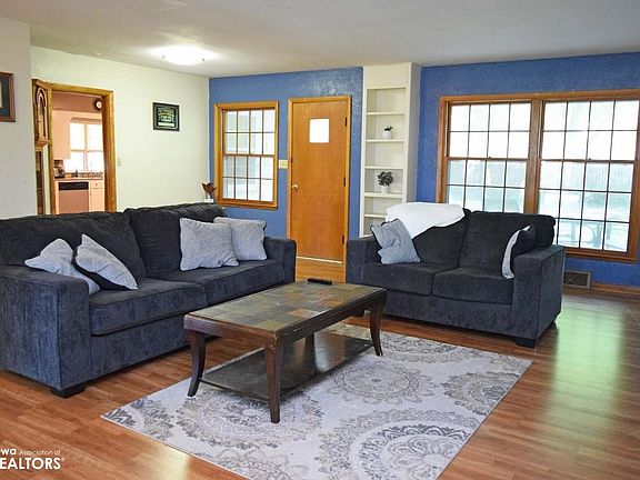 This rambling ranch style home is centrally located and move-in ready. Within walking distance to the square, restaurants, and schools. Spacious main floor includes a large living room with wood burning fireplace, and a huge kitchen with Quartz countertops, pantry, and room for a dining table. There are three bedrooms, one is a primary bedroom suite, with attached updated bathroom, and a second updated bathroom is across the house tucked between the two bedrooms. The basement has a wood burning fireplace, 1/4 bath, and a large open space, ideal for a rec room. A separate private room makes a perfect home office, or 4th bedroom. There is a large backyard, with a tall privacy wood fence, perfect for morning coffee, backyard games, and relaxing summer nights. One car attached garage and a concrete driveway. This spacious home has a lot to offer, call to see it today.