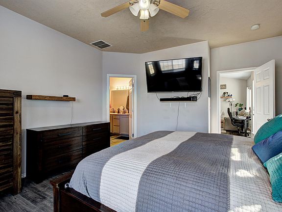 Discover this tranquil country gem featuring 3 bedrooms and 2 bathrooms. Enjoy an open floor plan with vaulted ceilings and a split bedroom layout. The roomy master bedroom has a bath with a separate shower, garden tub, dual vanities, and a walk-in closet. The fenced backyard and large covered patio are perfect for outdoor living and gardening. Plus, there's a 2-car garage and no HOA restrictions. Don’t miss out on this beautiful home offering modern amenities in a serene setting.