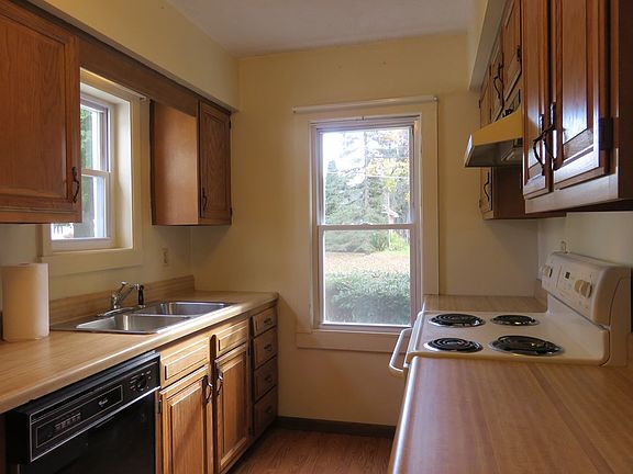 Adorable "Comfortable" Bungalow - Easy Living with everything you need on main floor. Roof just 9 years old, newer windows, vinyl siding. Clean and ready to move right in! Cute front porch and partial basement for storage. Located in a nice neighborhood - quick access to I-86. Features electric cook stove, refrigerator, dishwasher, and washer/dryer. Added character includes mission style front door, some glass door knobs, and possible wood floors under some of carpeting. Several perennials and a deep flat back yard with shed and clothes line. Ideal property for simple living!