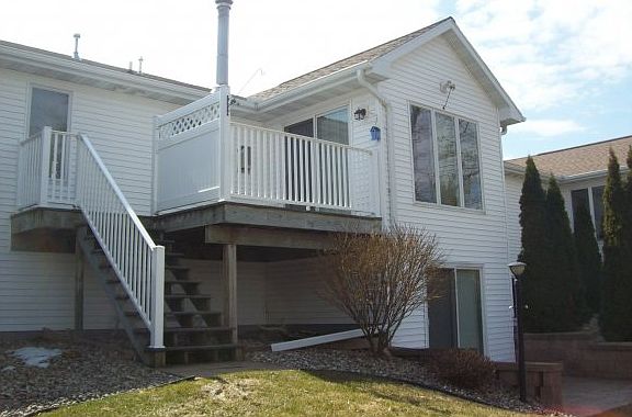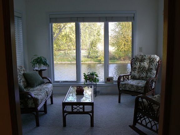 Fabulous Wolf River Condo. Open concept w/ soaring ceilings. Relax in the 4 seasons room overlooking the water or snuggle up to the Gas FP in the main living area. Spacious Kit W/Appliances, 1st floor Laundry. LL features family room w/ wood burning FP, bar and entertainment area with a walkout that is literally steps from the water with walkway and floating dock.