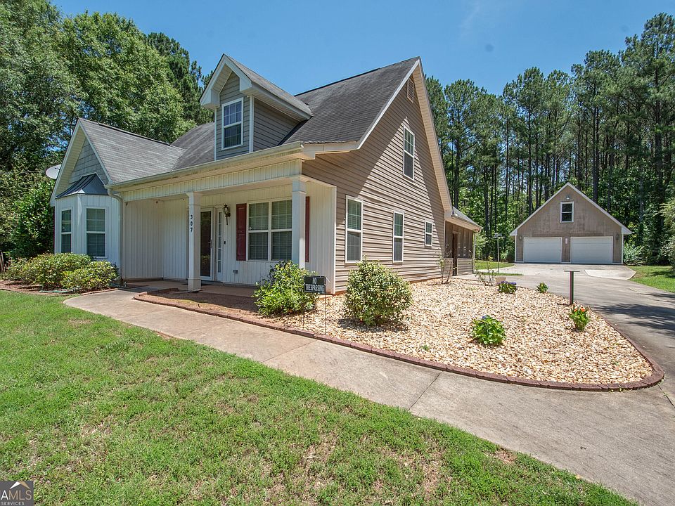 Welcome to your slice of paradise! Nestled on a sprawling 1-acre lot in a prime location, this charming home offers the perfect blend of space, privacy, and comfort. Built in 2005, this well-maintained residence boasts over 1500 square feet of living space and is situated in a serene setting, free from the constraints of a typical subdivision. As you step inside, you're greeted by a thoughtfully designed layout that maximizes both functionality and style. The main level features an oversized master suite, providing a peaceful retreat for relaxation and rejuvenation. Upstairs, two additional bedrooms and a full bath offer ample space for family and guests. One of the highlights of this home is the expansive enclosed back porch, complete with ceiling fans, offering the ideal spot for enjoying the picturesque views of the manicured yard and surrounding greenery. Whether you're sipping your morning coffee or hosting gatherings with loved ones, this versatile space is sure to be a favorite. Outside, the meticulously maintained yard provides plenty of room for outdoor activities and recreation, while additional concrete has been added to provide easy access to the two-car detached garage/shop. This spacious garage also boasts a huge apartment space above it, offering endless possibilities for customization. With its own entrance, this separate living area could serve as a guest suite, home office, studio, or rental unit, providing flexibility to suit your needs. Conveniently located yet secluded, this property offers the best of both worlds - a peaceful retreat away from the hustle and bustle, yet just minutes from shopping, dining, and entertainment options. Don't miss your chance to make this exceptional property your own!